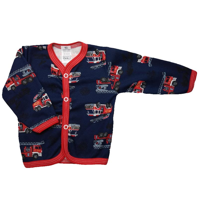 Bardzo luźny kaftanik dobrze sie ubiera dziecko nic go nie uciska, ładne wzory. tworzy znakomity komplet z półspioszkami. polecam.