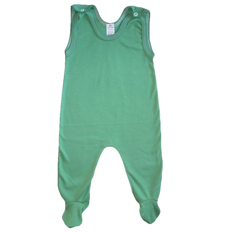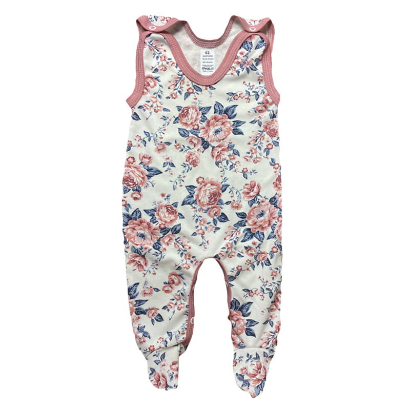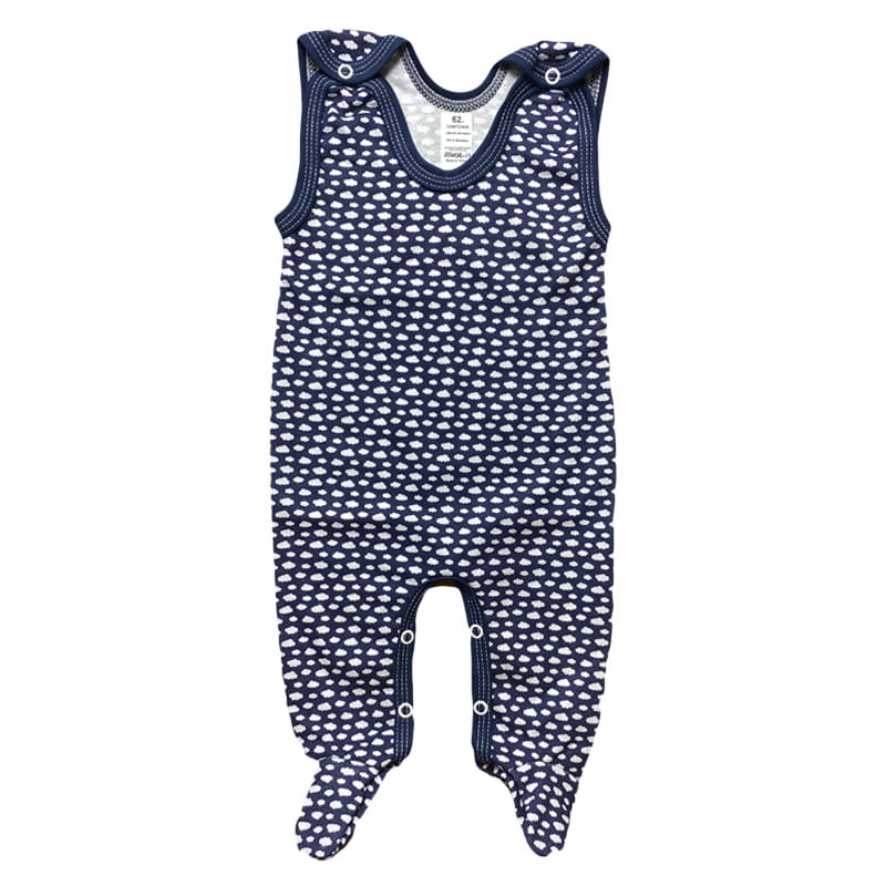 Śpioszki zapinane są na atestowane napki na ramionach i w kroku na obydwóch nogawkach.