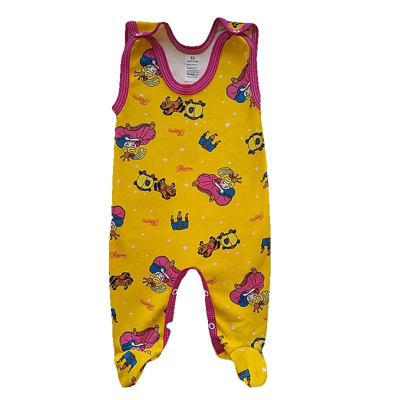 Kolorowe śpioszki niemowlęce rozpinane w kroku, w rozmiarze 62.